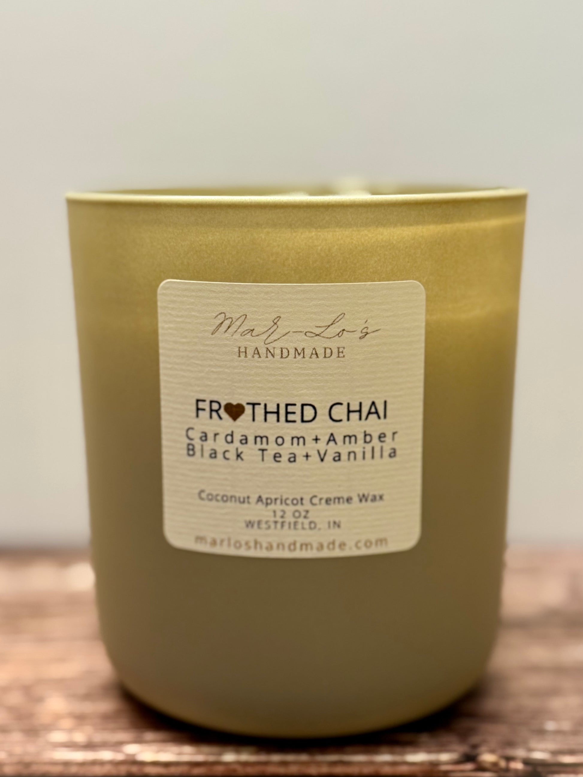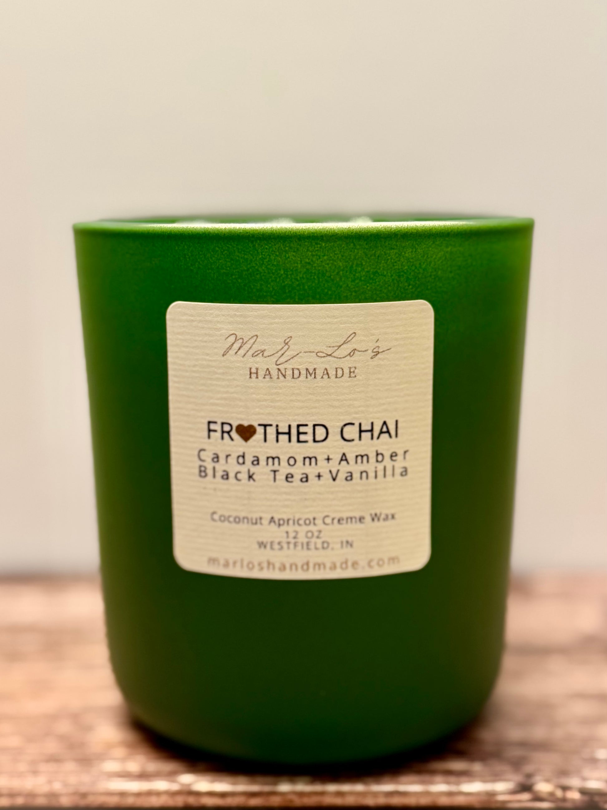 Frothed Chai opens with warm spices and soft sweetness. As it burns, smooth black tea and creamy vanilla froth deepen into amber and sandalwood, creating a cozy, indulgent atmosphere. It's a perfect everyday comfort scent for fall, winter, or any moment you want to feel warm and settled.