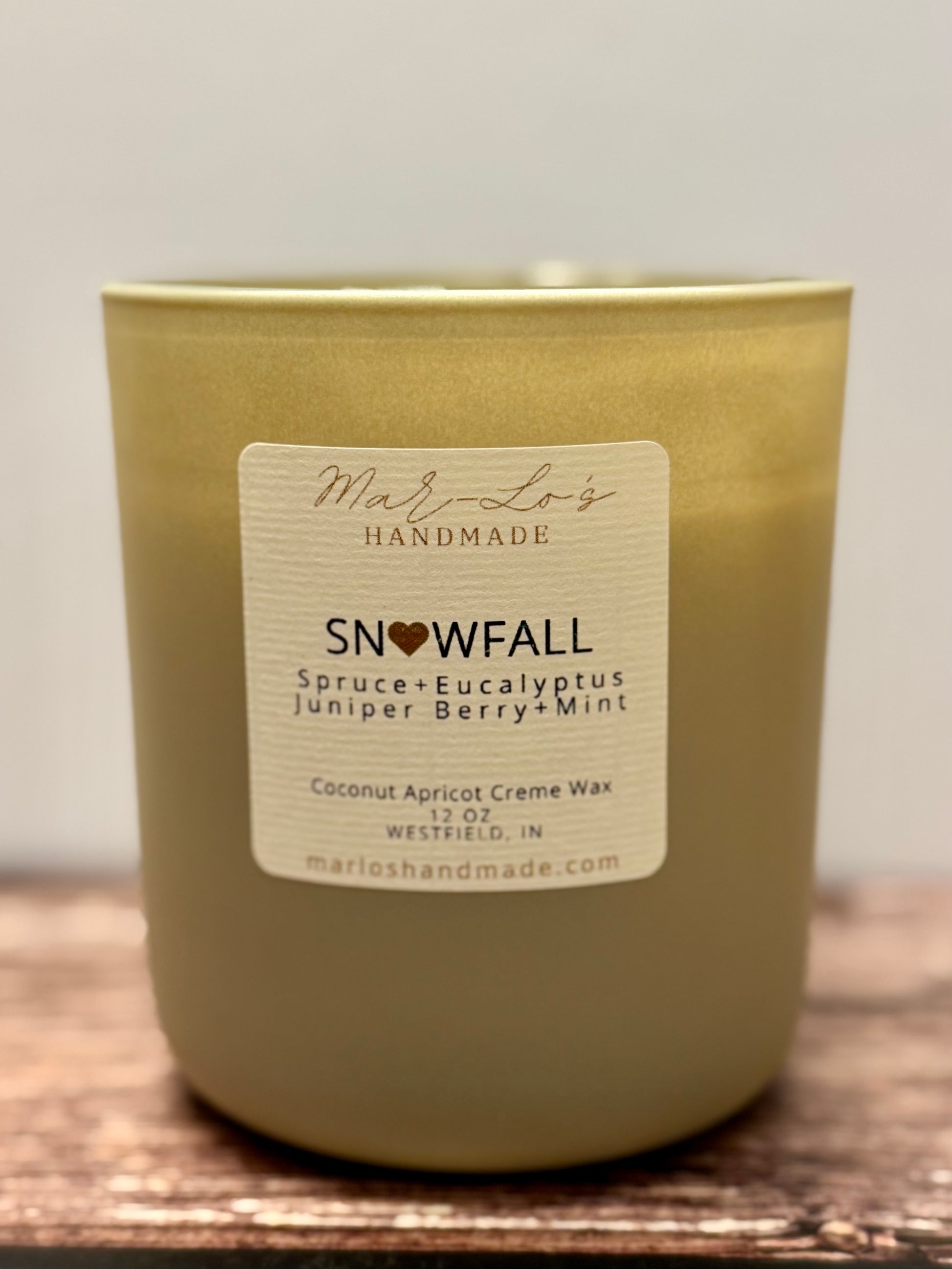 Snowfall Candle – Crisp Winter Mint & Evergreen Scent | Clean Coconut Apricot Wax + Wooden Wick